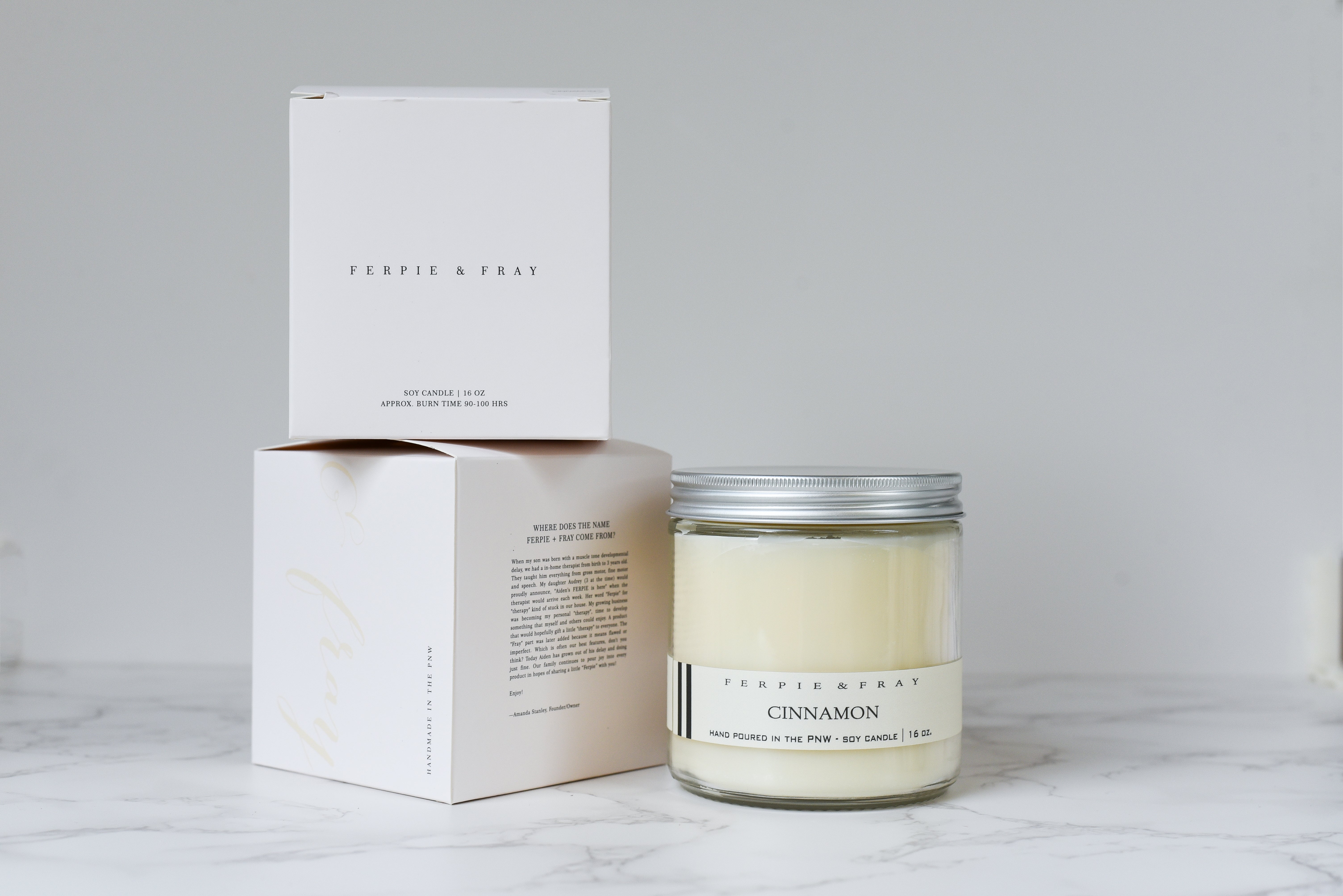 Our candles are 100% soy wax, with a cotton/soy braided wick for a slow, clean, and even burn. With careful detail, our fragrance oils are non-toxic for a unique blend that is paraben and phthalate free! Each candle is hand poured in our PNW based home studio.