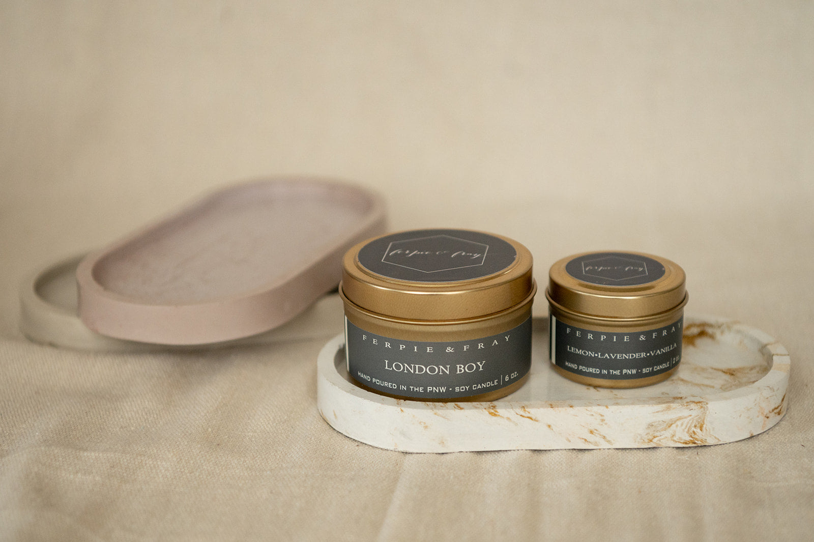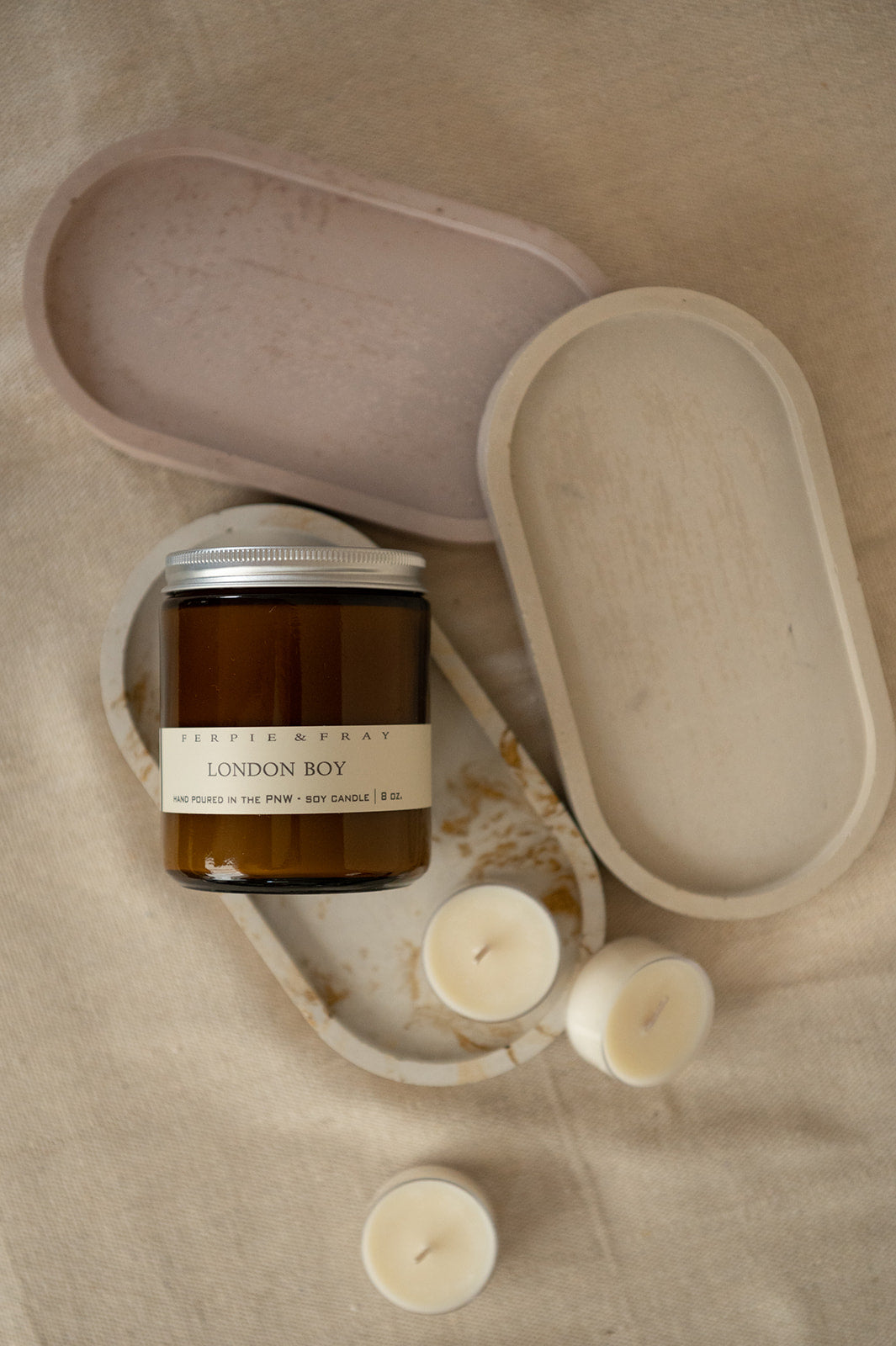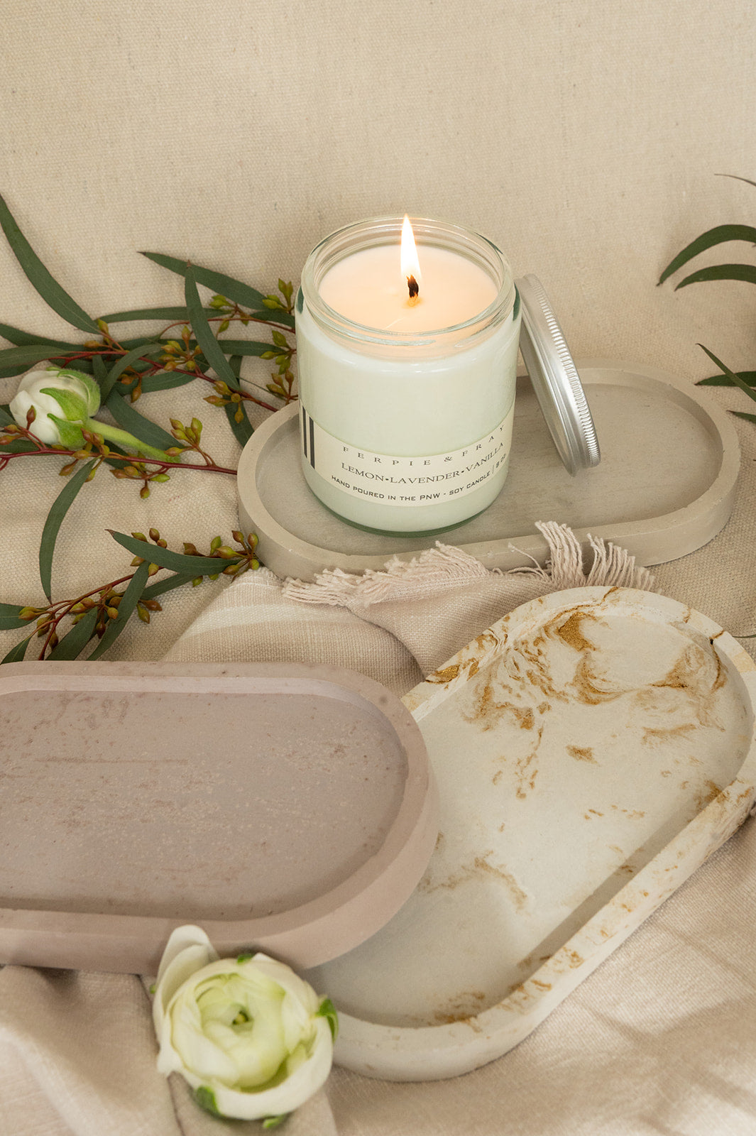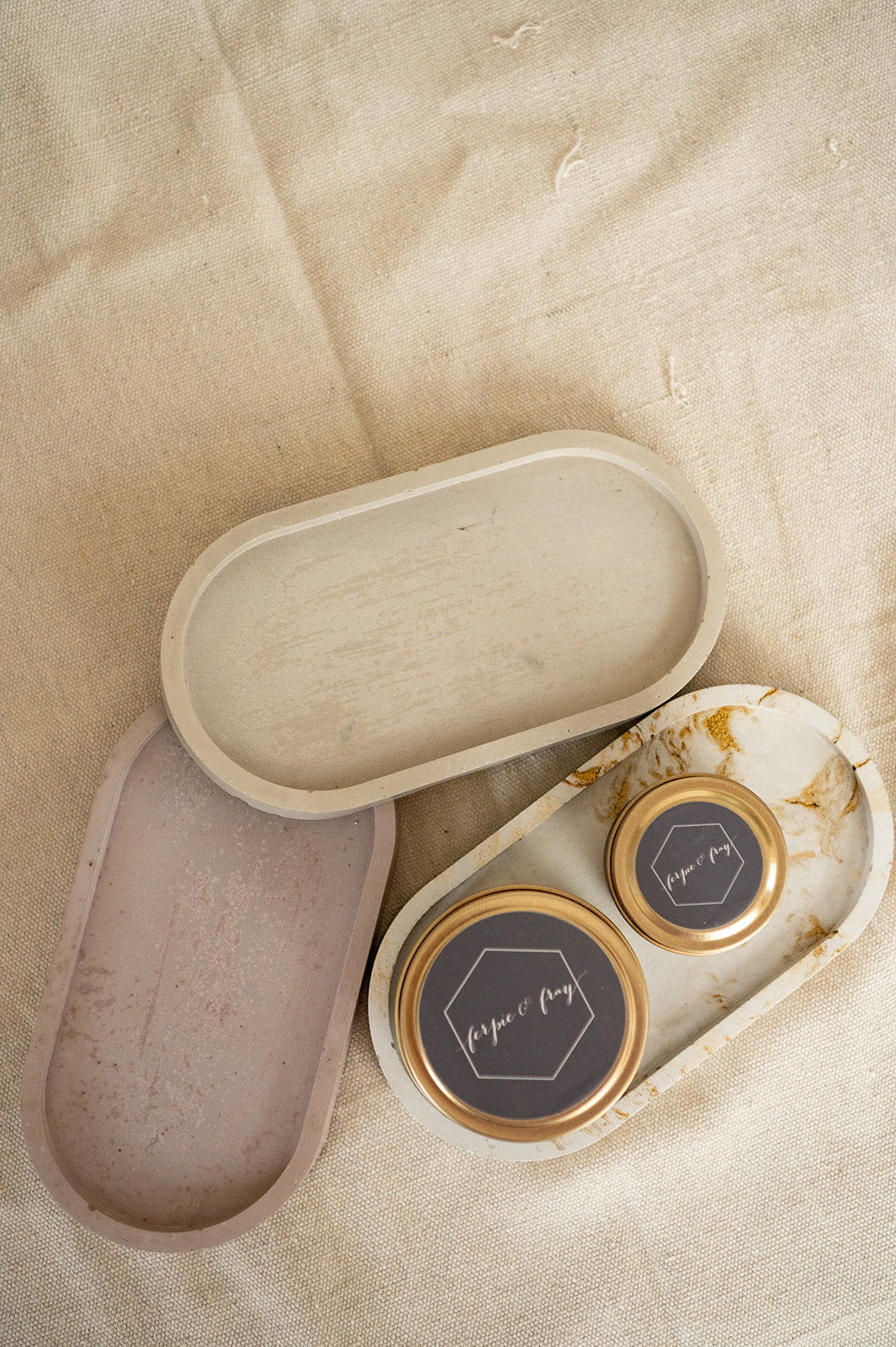 Beautiful handmade concrete candle trays. Perfect for displaying our candles, tea lights, or wick trimmers. Also works great as a catch all or soap dish!