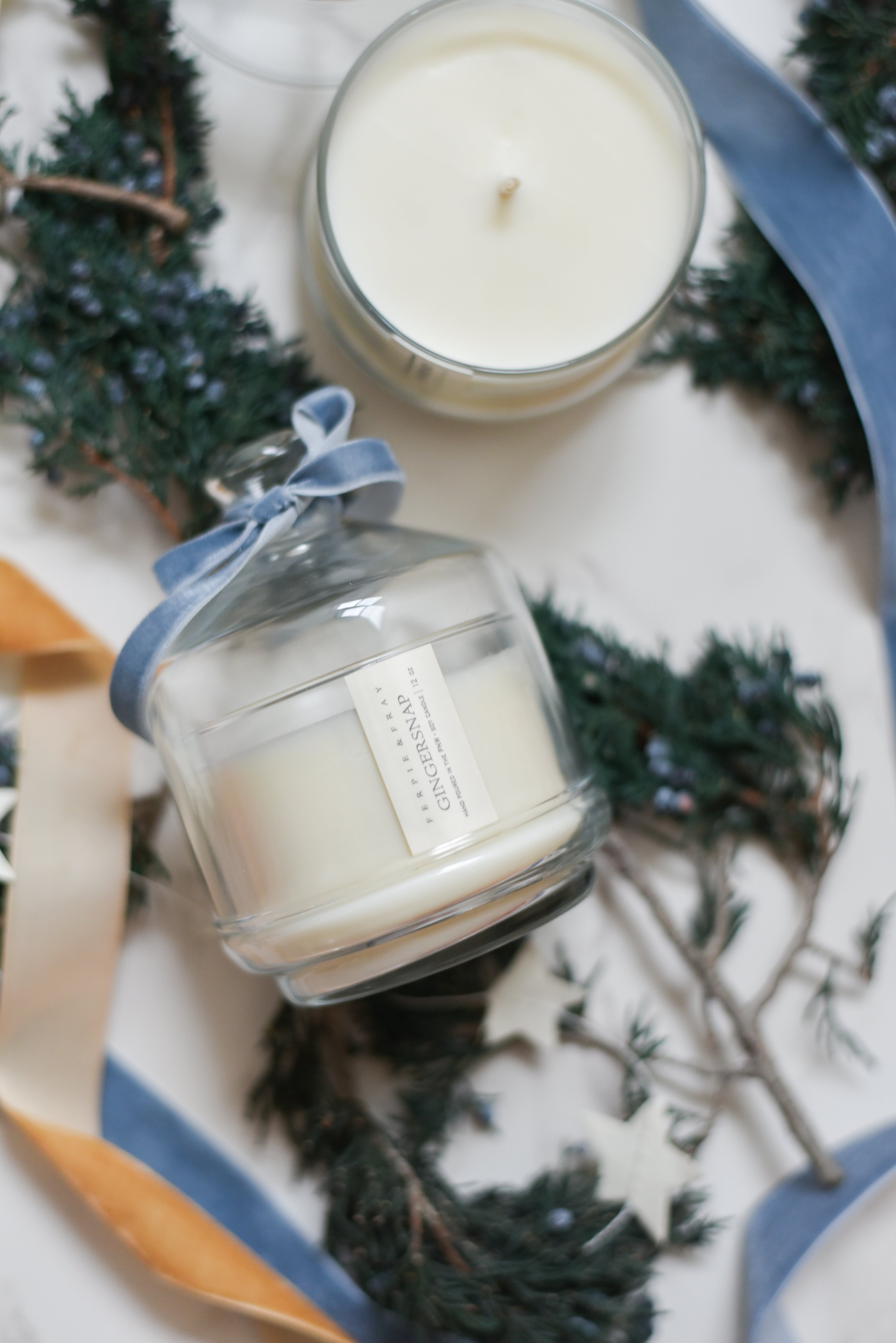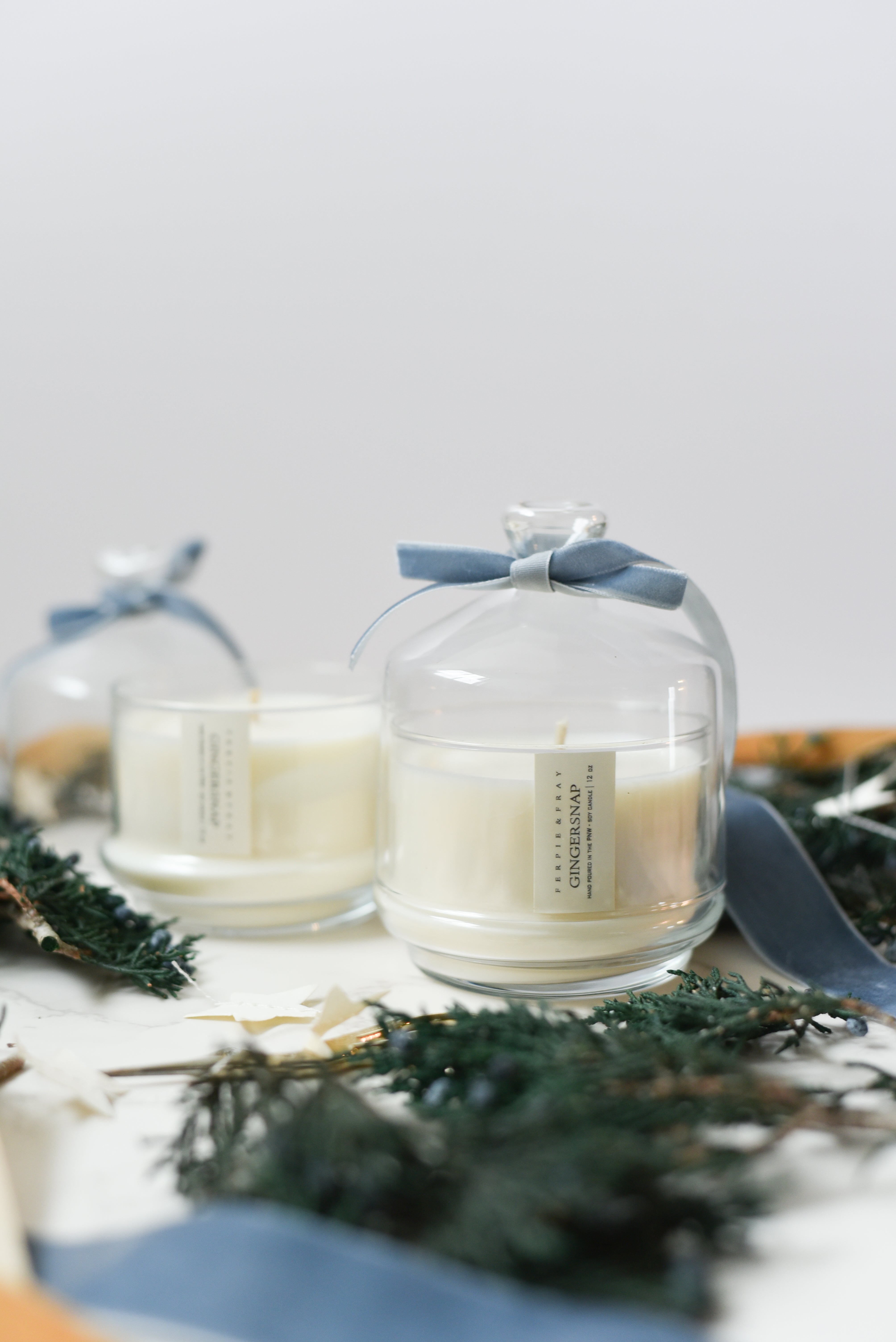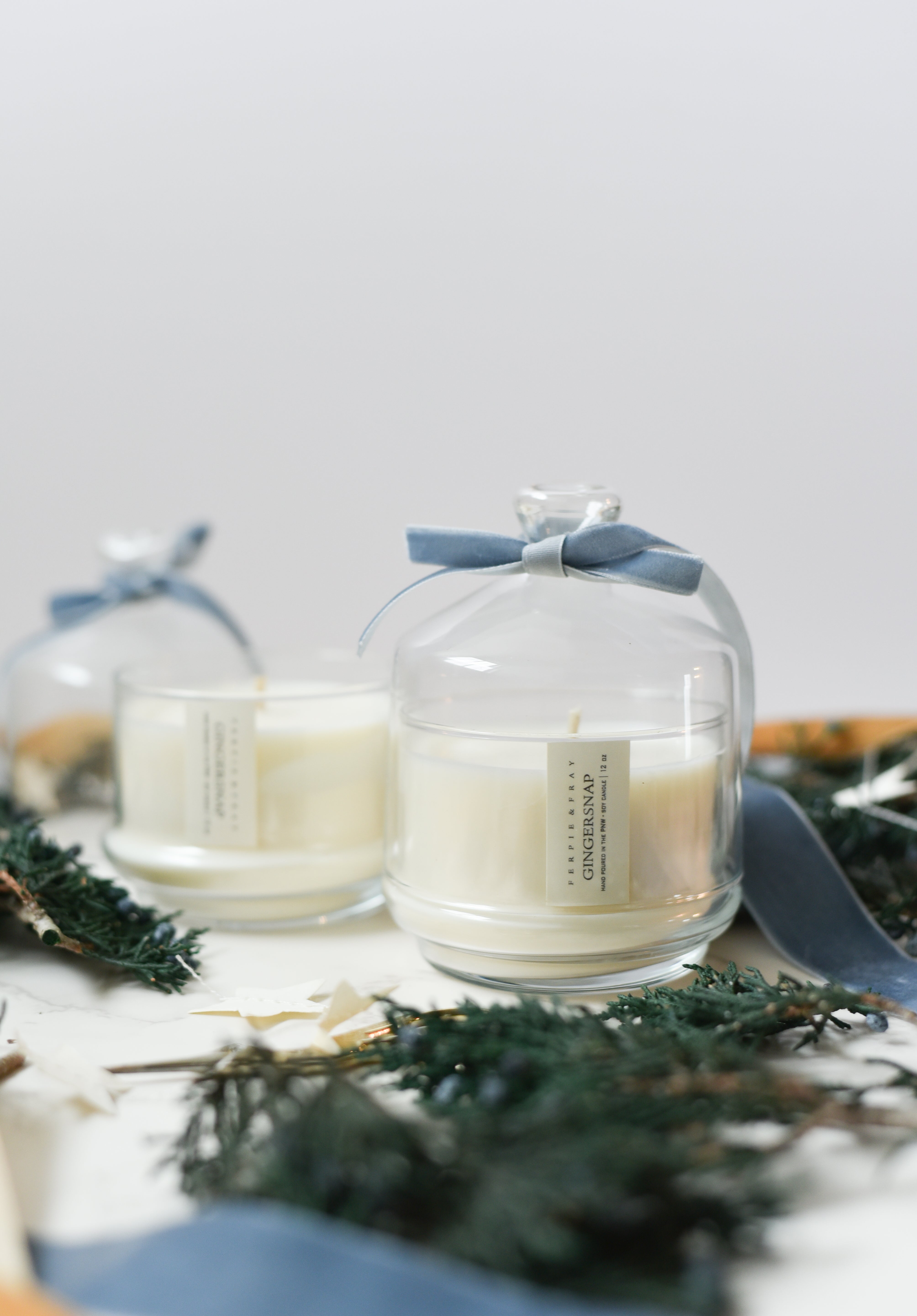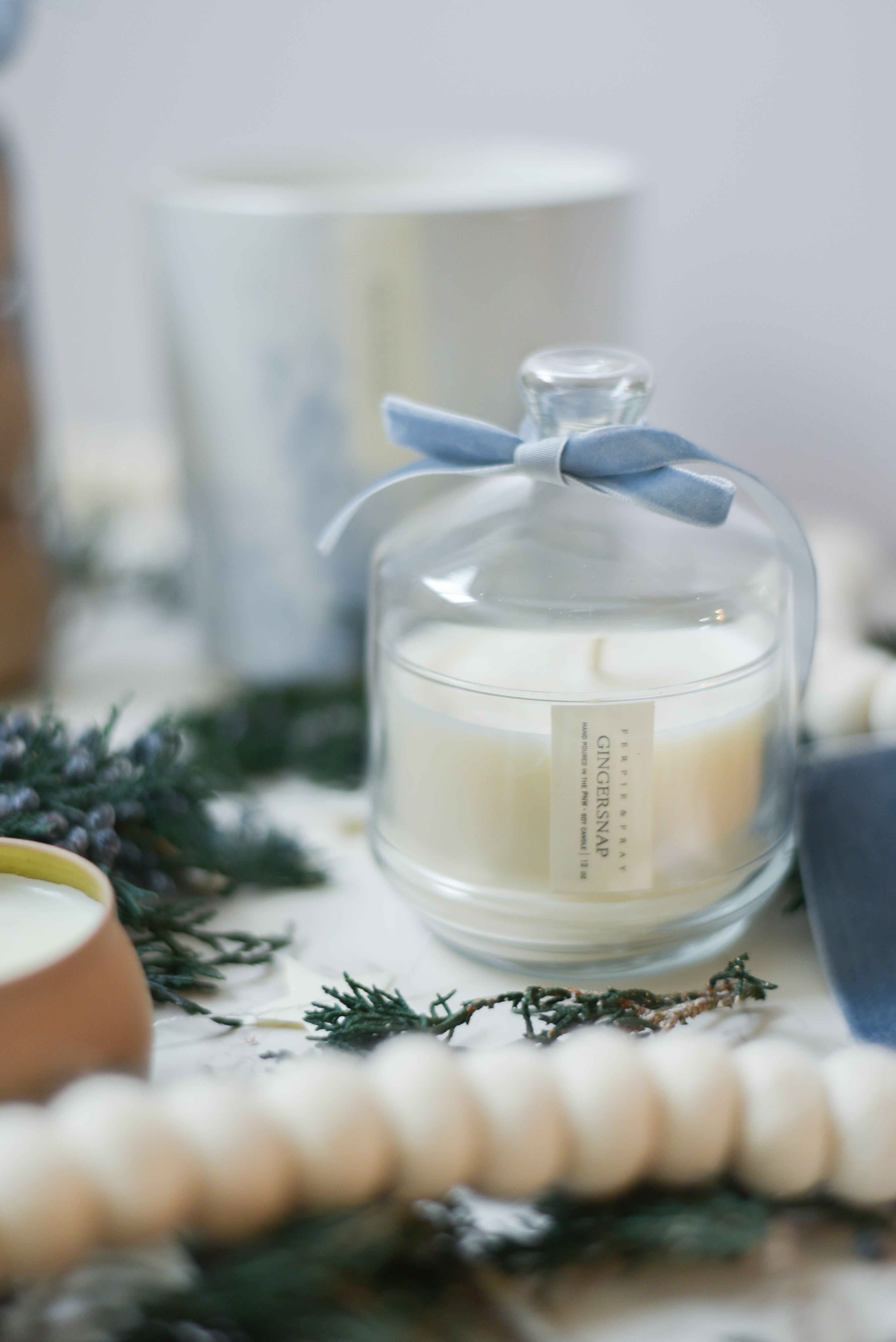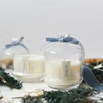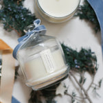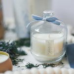 Available in a beautiful glass jar with glass cloche. 8oz // burn time approx. 50-60 hrs.