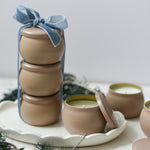Trio includes: 3-4oz tins // burn time approx. 35-40 hrs per candle