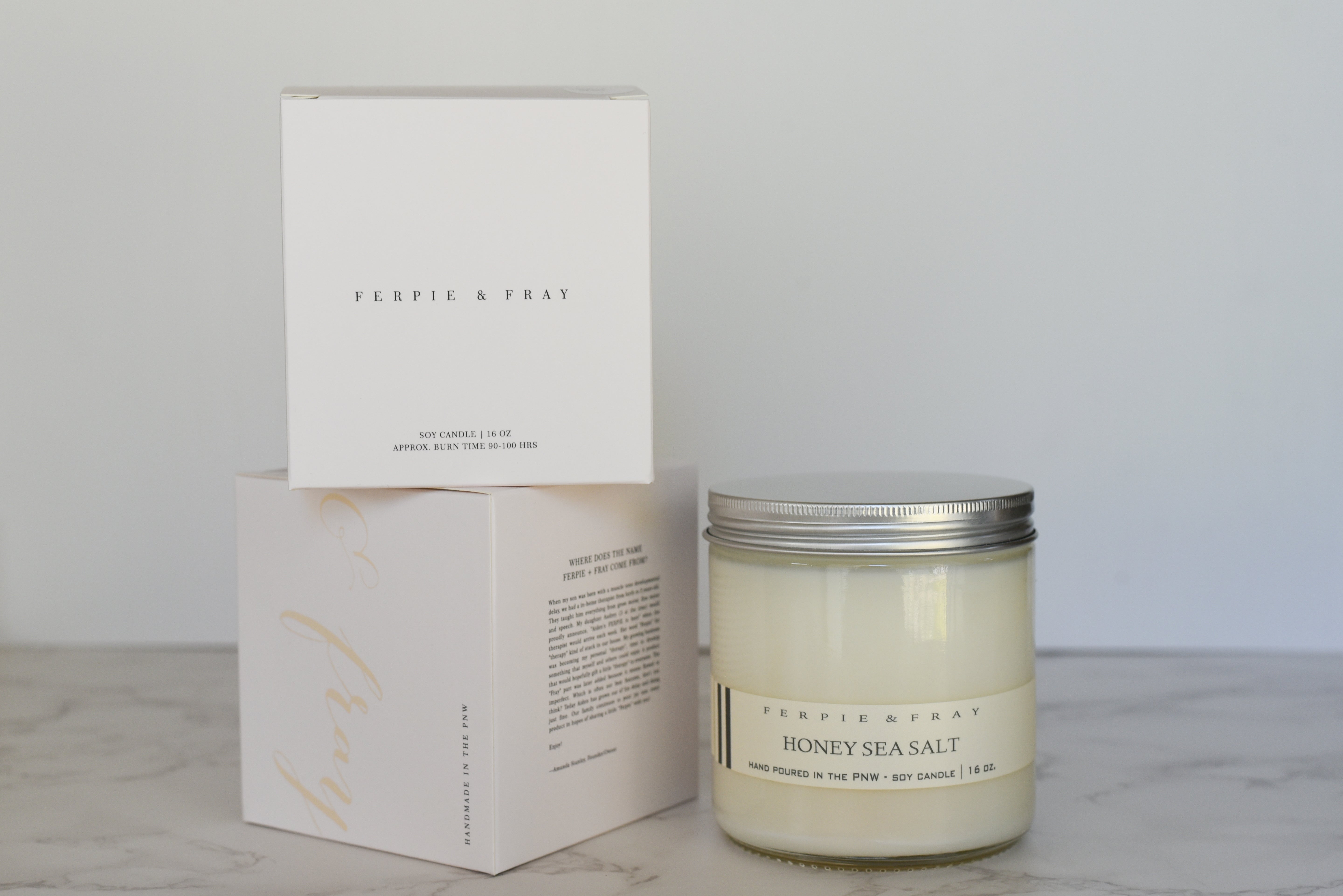 Our candles are 100% soy wax, with a cotton/soy braided wick for a slow, clean, and even burn. With careful detail, our fragrance oils are non-toxic for a unique blend that is paraben and phthalate free! Each candle is hand poured in our PNW based home studio.