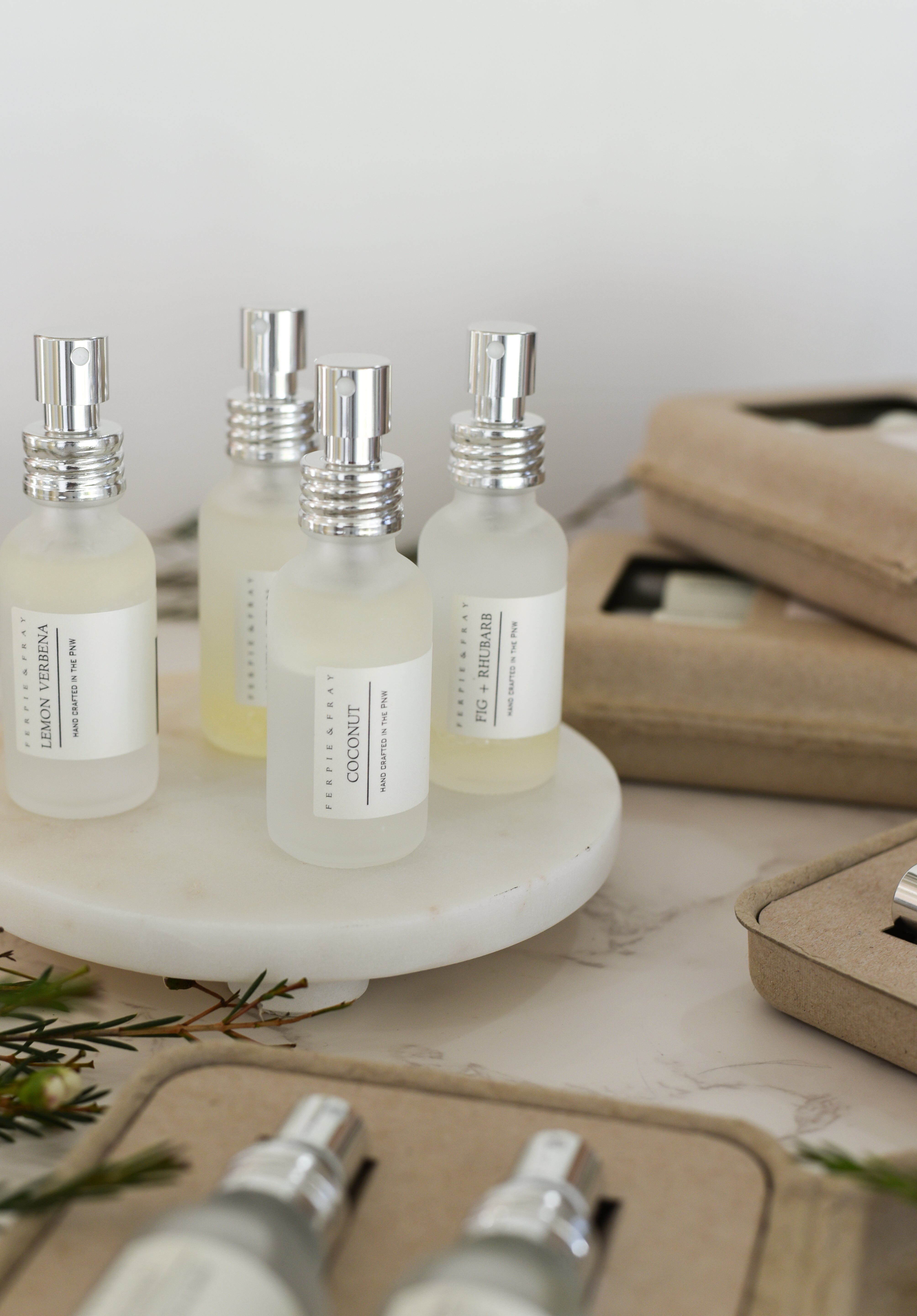 Our fine mist sprayers distribute the spray nice and evenly throughout the air, this helps ensure your linen + room sprays last a long time with little to no waste.