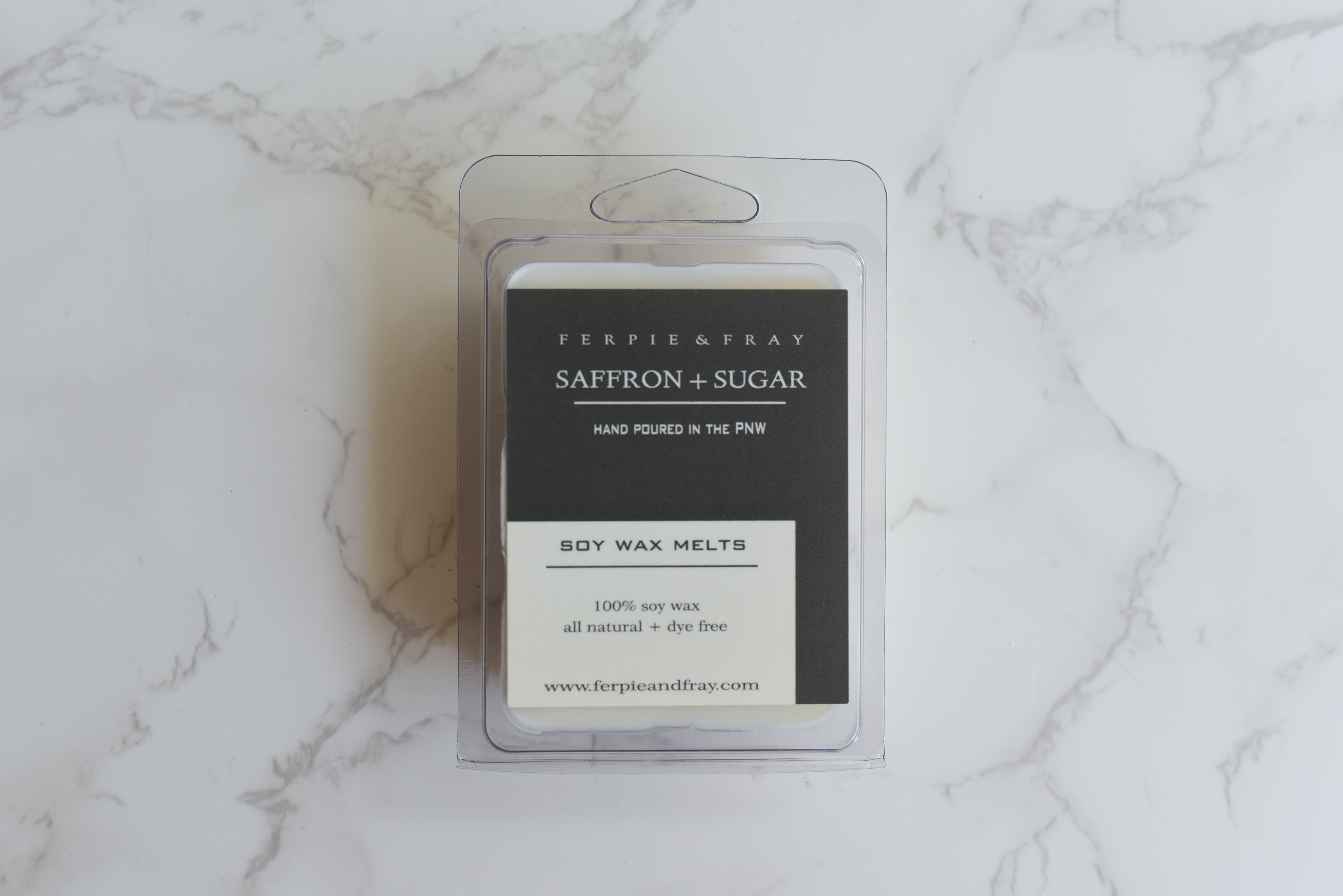 Saffron + Sugar: A beautiful spicy and intriguing fragrance that embodies all seasons. Soft notes of cashmere wood, orange flower, and amber with base notes of ginger and bold saffron. This spicy fragrance entertains your senses!
