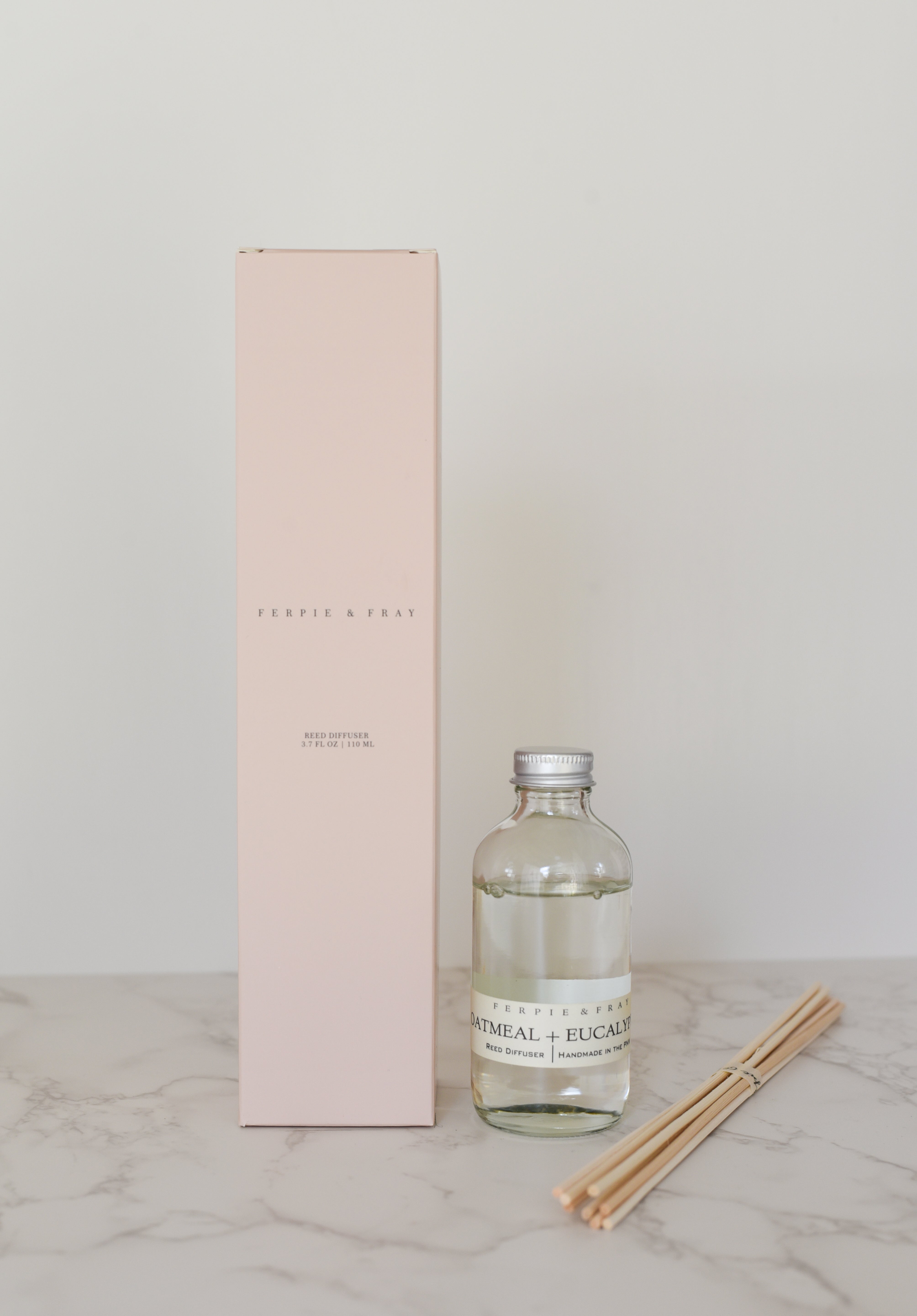 Oatmeal + Eucalyptus: A fresh mix of eucalyptus greens, balanced softly with warm vanilla and oat that elevates this blend to feel like a relaxing day at the spa.